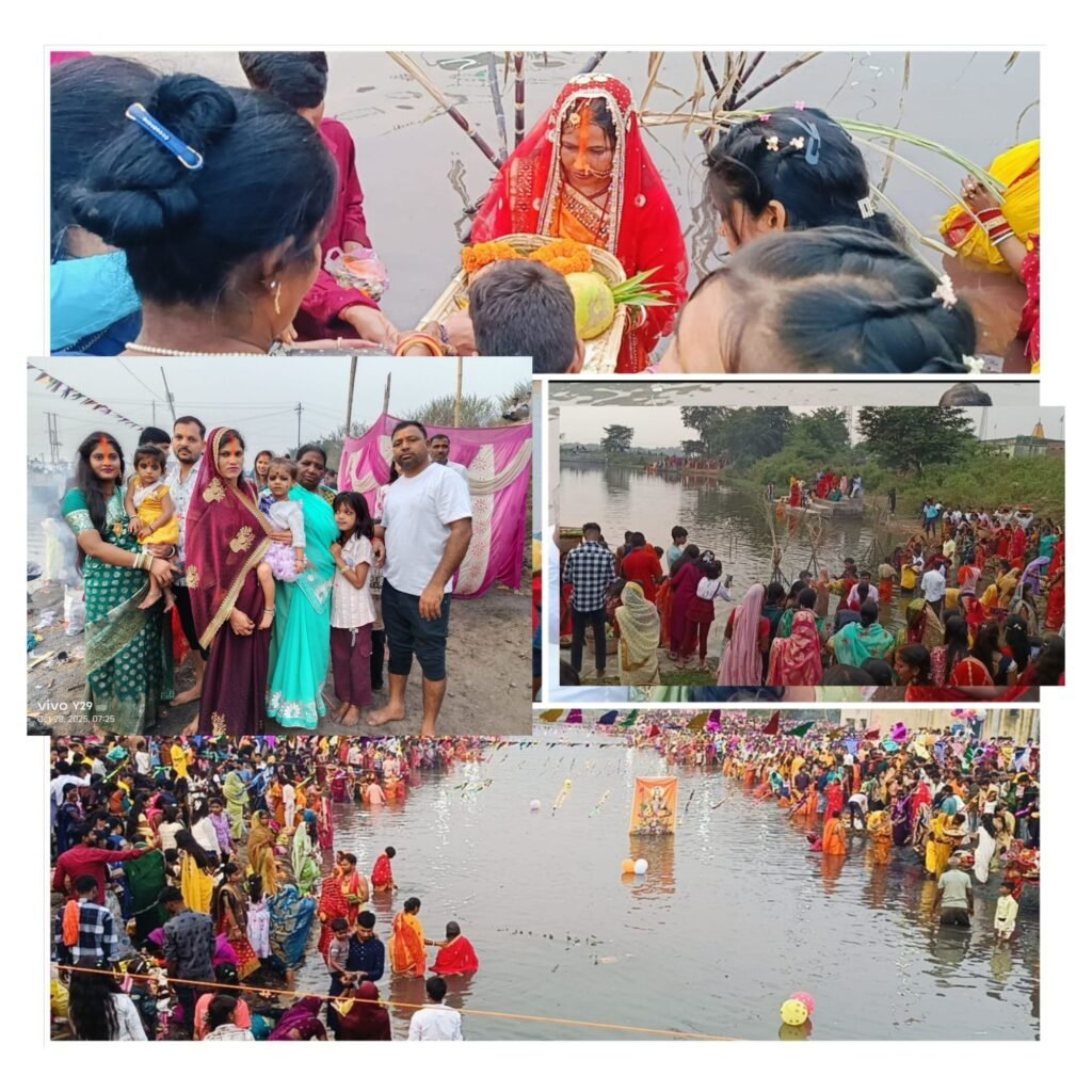 सूर्यास्त के समय जैसे ही व्रतियों ने जल में खड़े होकर ‘छठ मइया’ के गीत गाए, पूरे घाट का वातावरण भक्ति और भावनाओं से भर उठा।